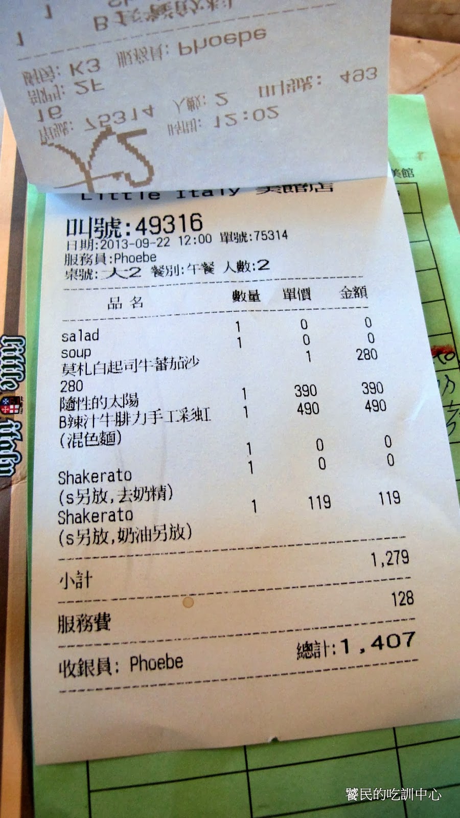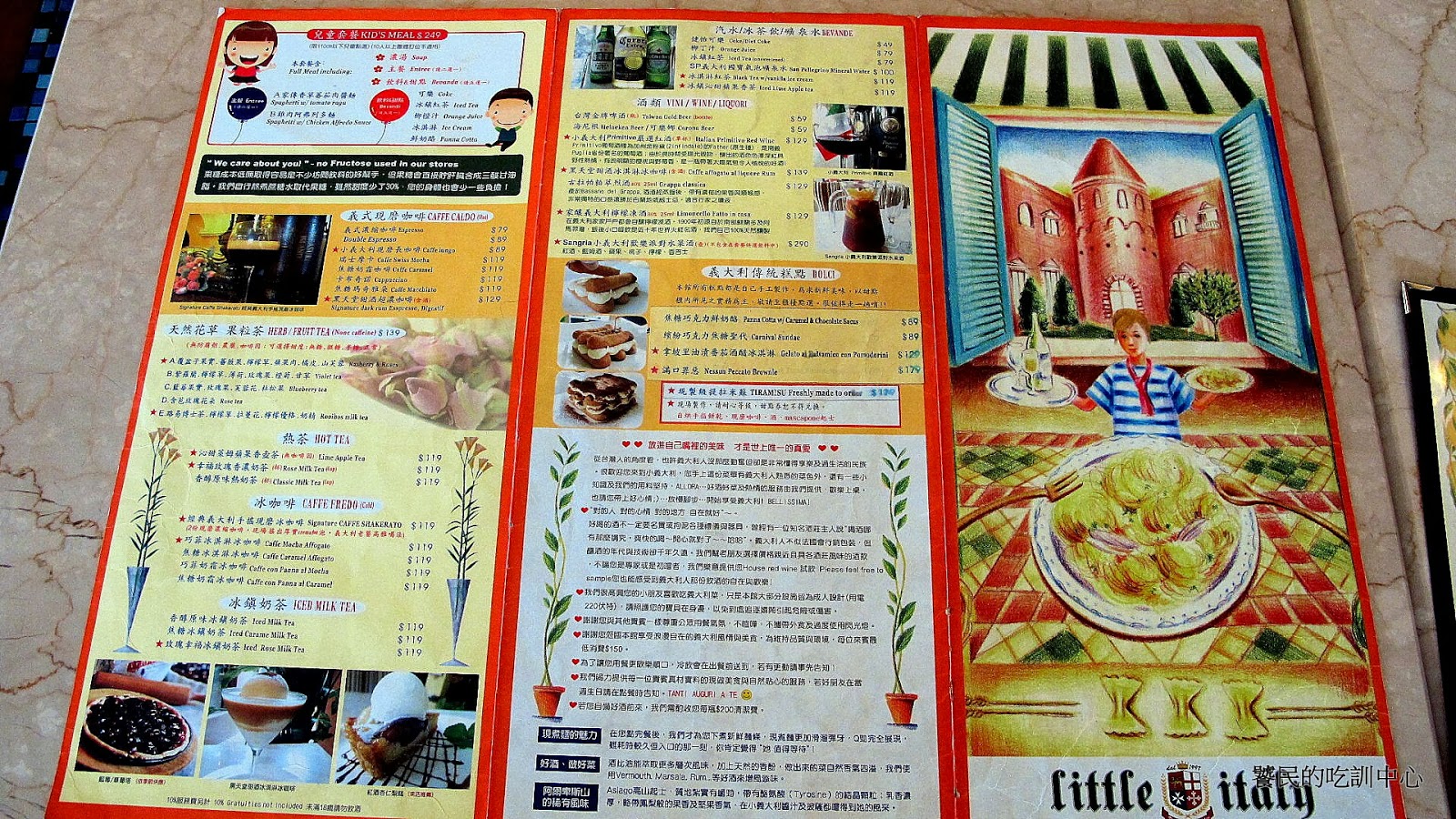 吃飽喝撐,聽了好幾首表演歌曲,待了兩小時才離開小義大利。走到門外的瞬間,產生了不適應環境的錯覺,這是一家成功的主題餐廳必定給人的感覺。身心已逐漸適應另一個國度之後,突然抽離開來的違和感,就是氣氛營造成功的最好證據。