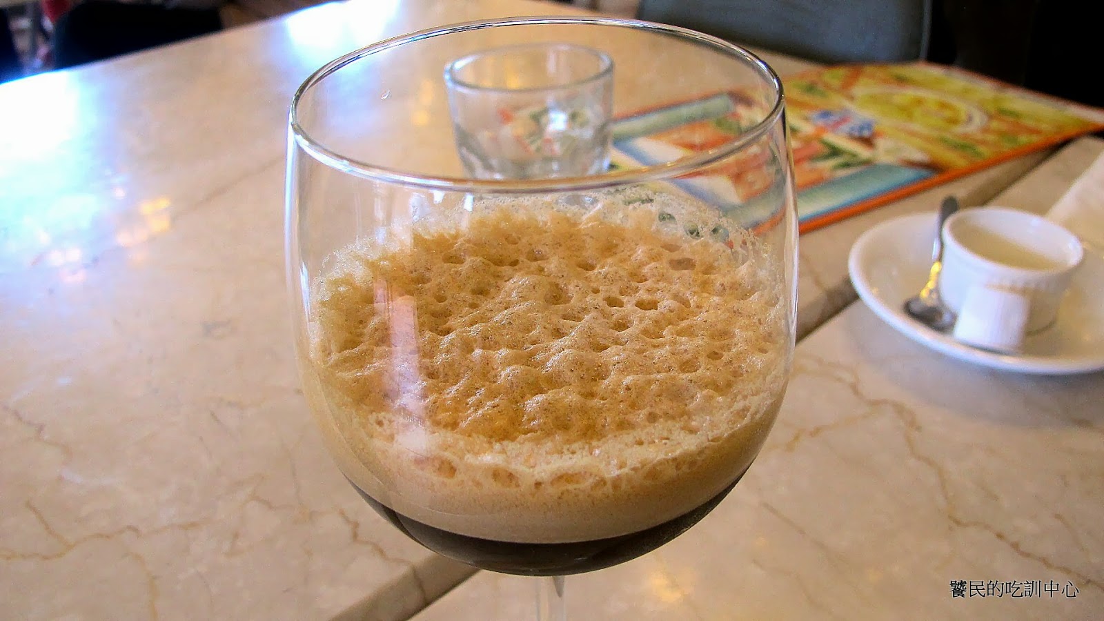 菜單上說明: 兩份義式濃縮咖啡,用高超技術搖出厚實泡沫,此為義大利老饕高級喝法。