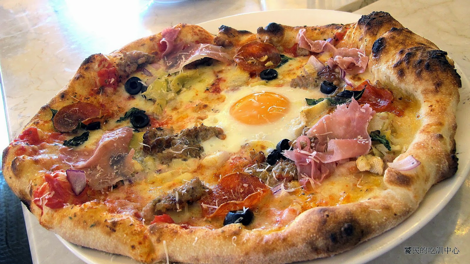 太陽者,生蛋也。上次在Copain看到的特製披薩也是披薩中間放一顆蛋,想不到小義大利玩的更兇,出爐之後打一顆生雞蛋在上面,直接端到客人面前。