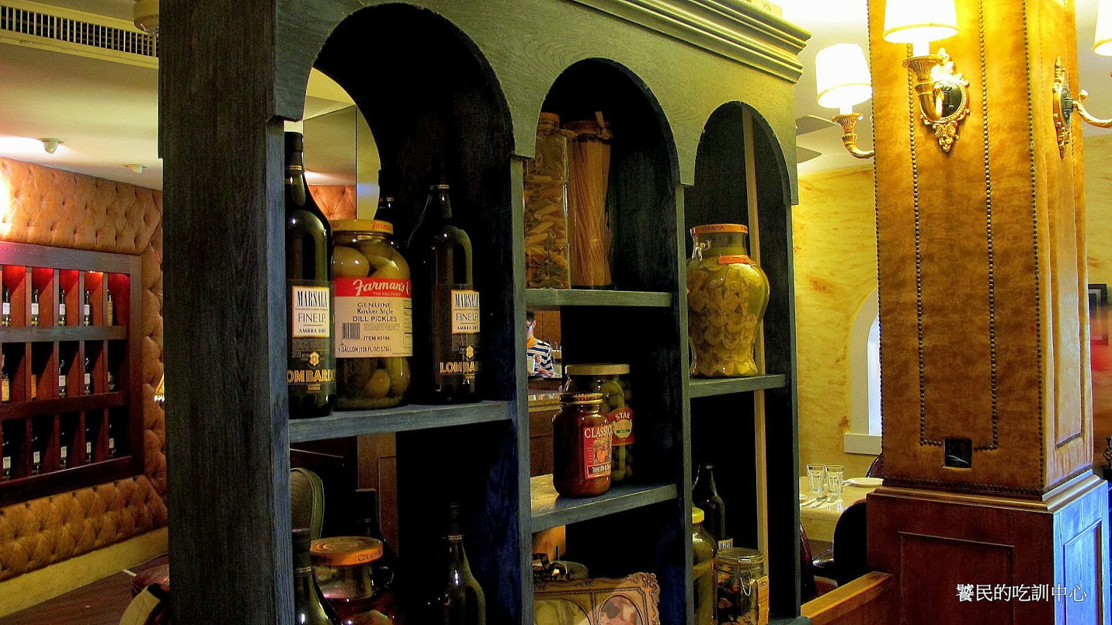 仔細一看,就連隔間櫃都是拱形門的模樣。在這個小義大利裡的高級區,好像比較適合情侶約會,而不適合家庭聚餐。