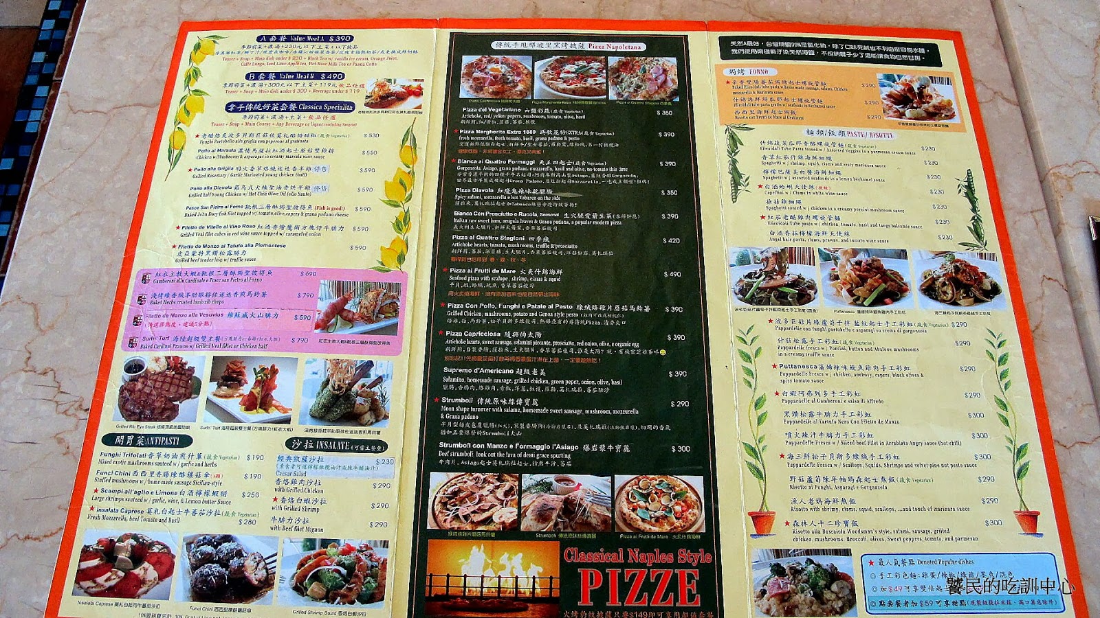但是,一旦決定去小義大利,店門前的長條紅毯以及造型拱門就已經讓人有踏入異國的心理準備了。主題餐廳不可或缺的餐前入戲感做得非常成功。